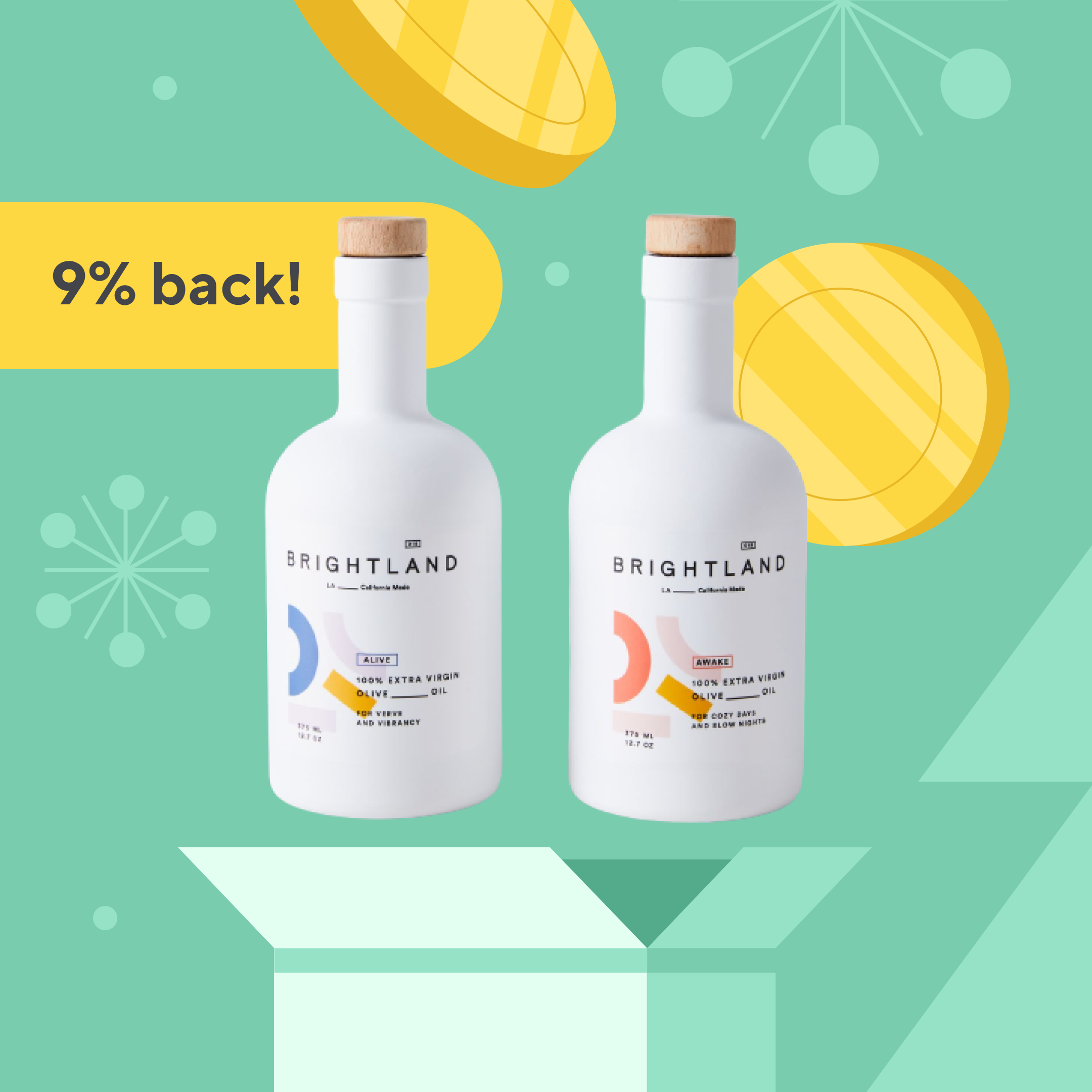 Brightland's best-selling extra virgin olive oil is made in California with 9% back + up to 30% off today.