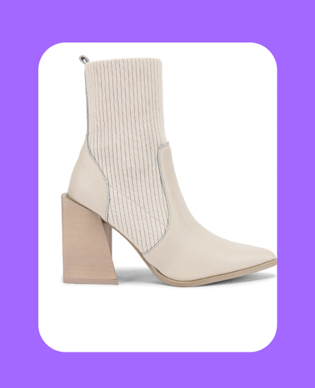 What do you get when you take two winter trends and combine them in one killer boot? the ivory tackle sock bootie. these heeled boots are the perfect marriage of the trendy sock boot style that conforms to your foot for a comfy feel and the winter whites look that’s take fashion by storm. get the best of both worlds all for under 150.