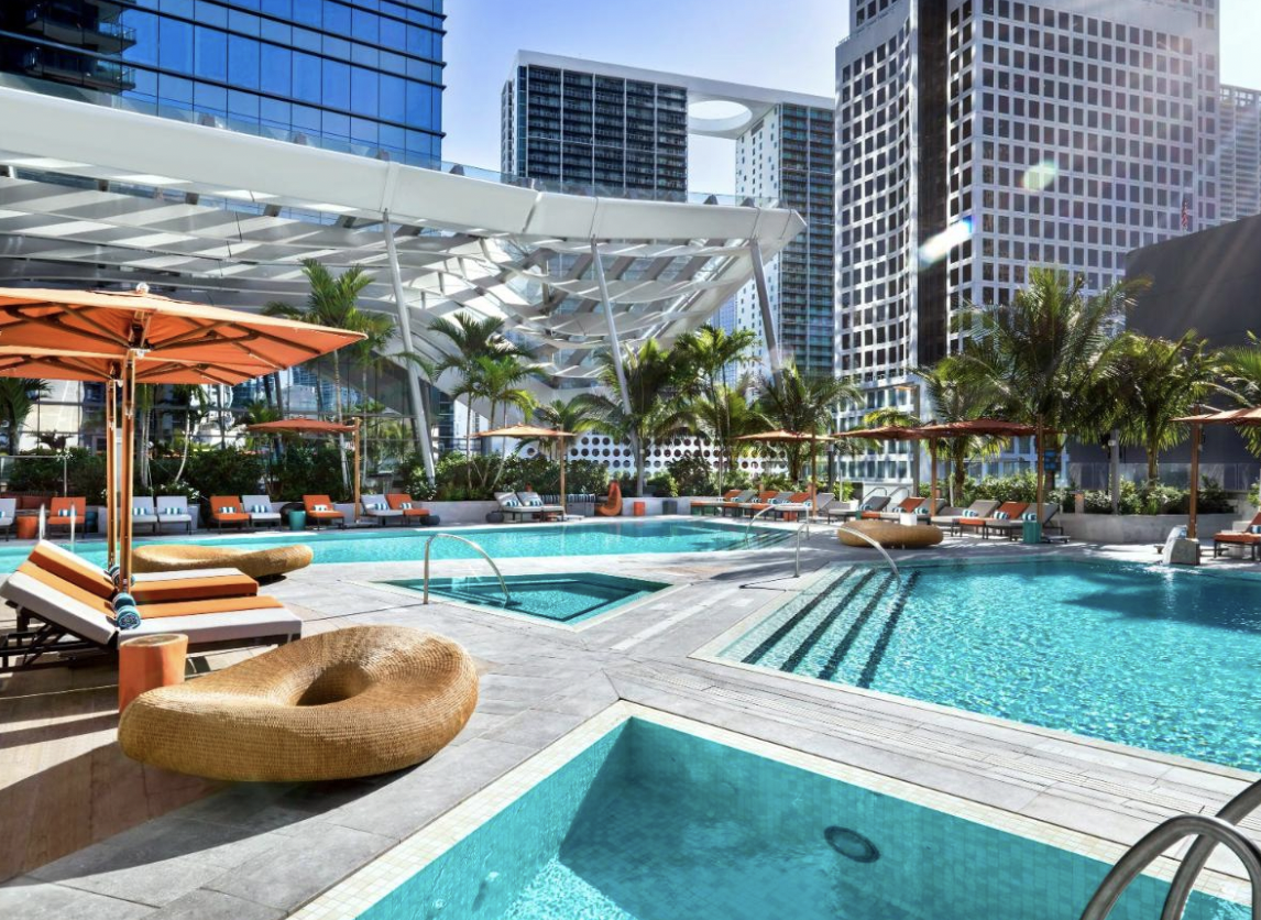 Miami has no shortage of amazing hotels–but EAST Miami Hotel is a standout. Located in the heart of Miami, EAST Miami's luxe amenities include 4 pools, an on-site restaurant, and a 24-hour fitness center. Located in Brickell City Center, it’s surrounded by some of the best that the city has to offer with premium retail shops, a movie theater, vast dining options, bars, spas, and more.