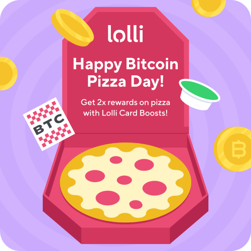 Celebrate Bitcoin Pizza Day with 2X bitcoin rewards at Papa John's, Domino's, & Pizza Hut on Lolli!