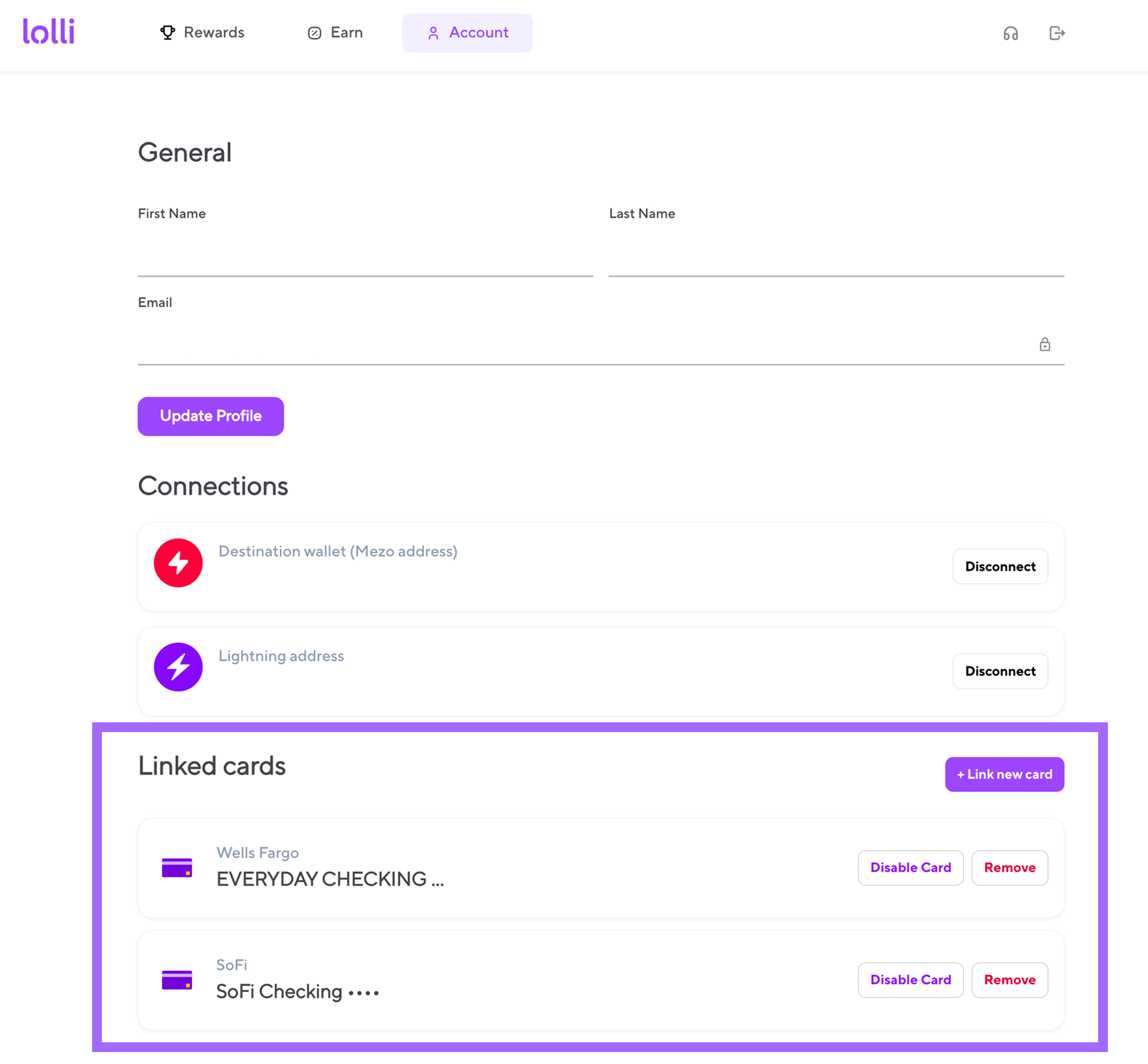 Today is Phase 1: Card Linking. Connect supported credit or debit cards on the Lolli web or mobile app and earn 1,000 sats just for linking your first card.