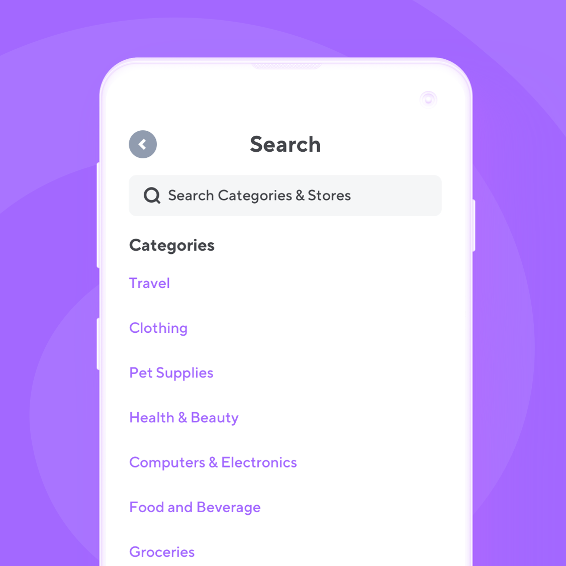 Use the Search bar on the 'Earn' screen to search by category or a store's name. Looking for a new mattress? Just type 'mattress' in the search bar, and we'll serve up some of our favorite mattress brands with big rewards like Eight Sleep, Leesa, & more.