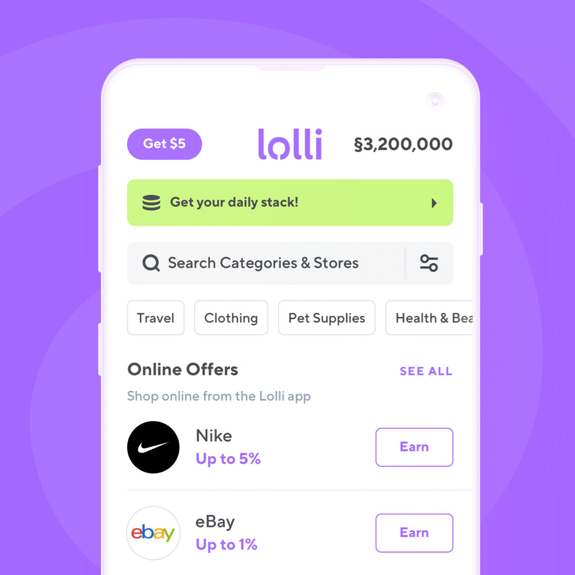 Explore all the stores you know and love on Lolli, and find your new favorite store on the Lolli app.