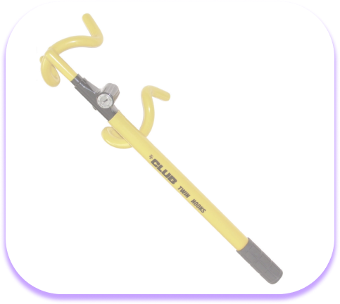Stop professional thieves and joy riders from taking your vehicle with The Club Twin Hooks. Made in yellow for high visibility, The Club Twin Hooks locks on to the steering wheel, making the vehicle impossible to steer.