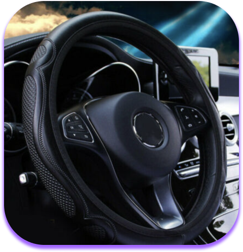 Clean up your car's interior with the Black Leather Steering Wheel Cover for an easy to clean, stylish appearance.