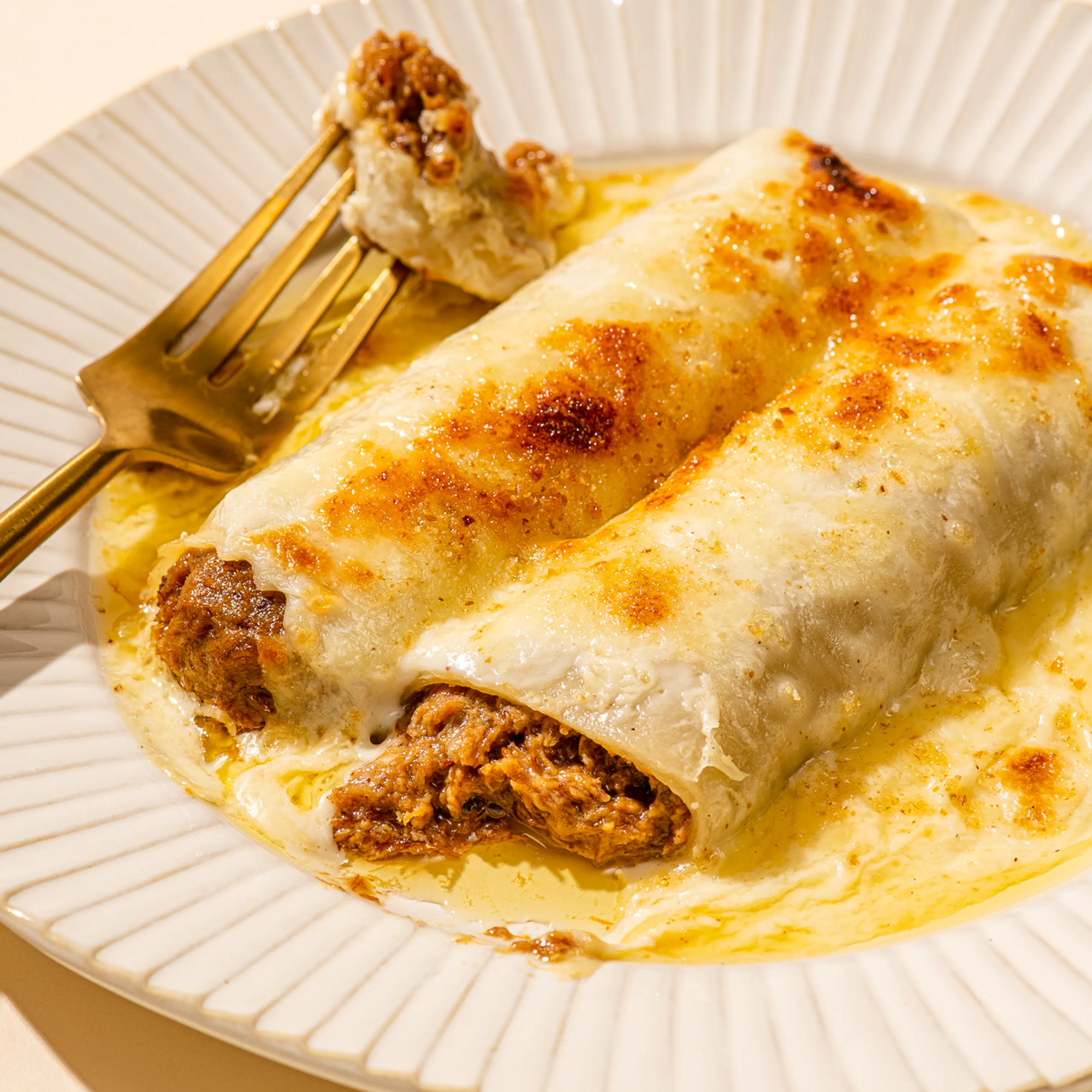 The traditional dish from Catalunya is made by filling pasta with a stew of pork, chicken, and foie gras, topped off with béchamel sauce and Manchego cheese. Rich and homey, it’s exactly what you never knew you needed for your next pasta craving.