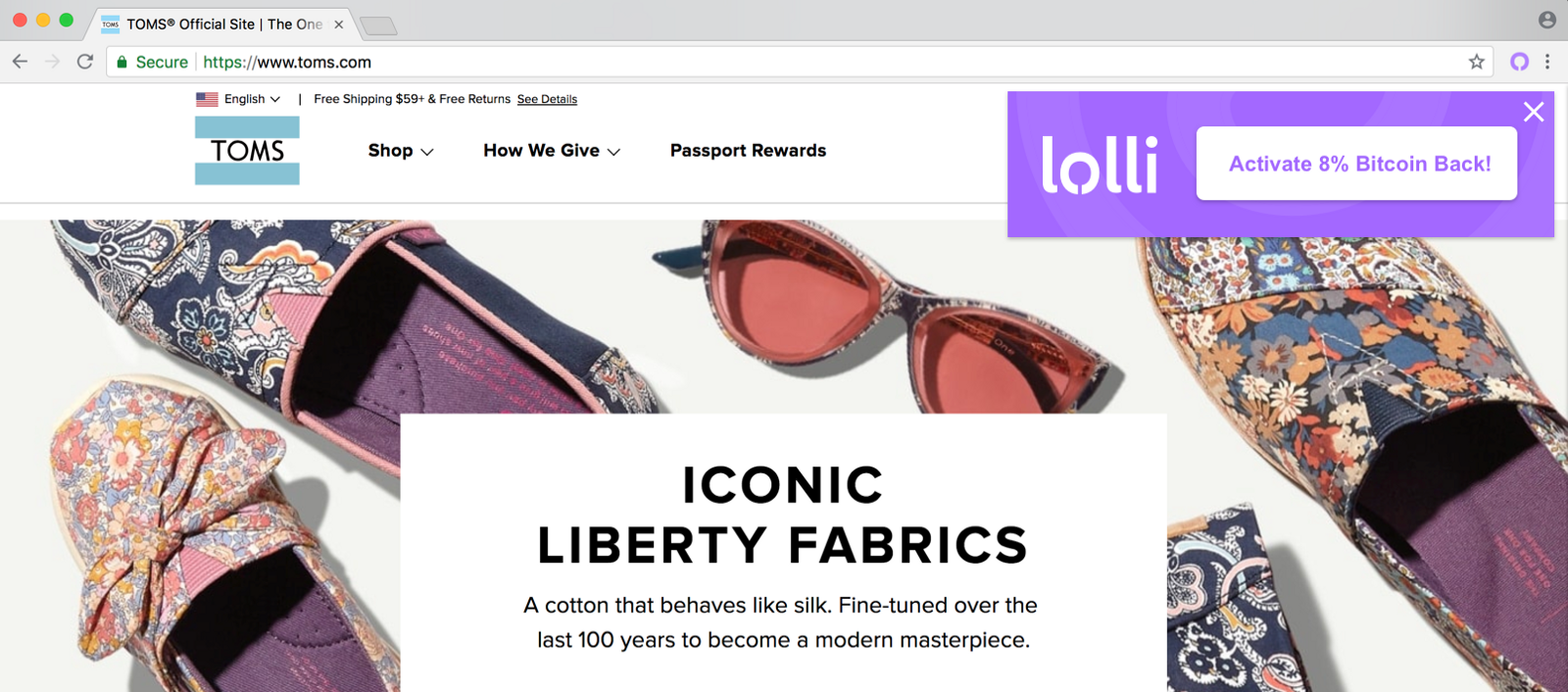 Today, I’m excited to announce the launch of Lolli, a rewards application that earns you bitcoin when you shop online. We are launching Lolli with 500+ retail partners in fashion, food, lifestyle, and travel, giving users the opportunity to earn bitcoin while they’re shopping for shoes, groceries, hotels, and more.