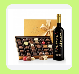 This is the perfect V-Day gift. A Forever + Always theme sandblasted bottle of red wine paired elegantly with a delectable 36-piece ballotin of Godiva's® finest truffles. Add a special message for your love and save the bottles for years to come.